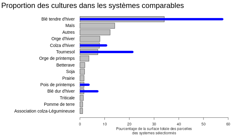 - La distribution des exploitations comparables en noir