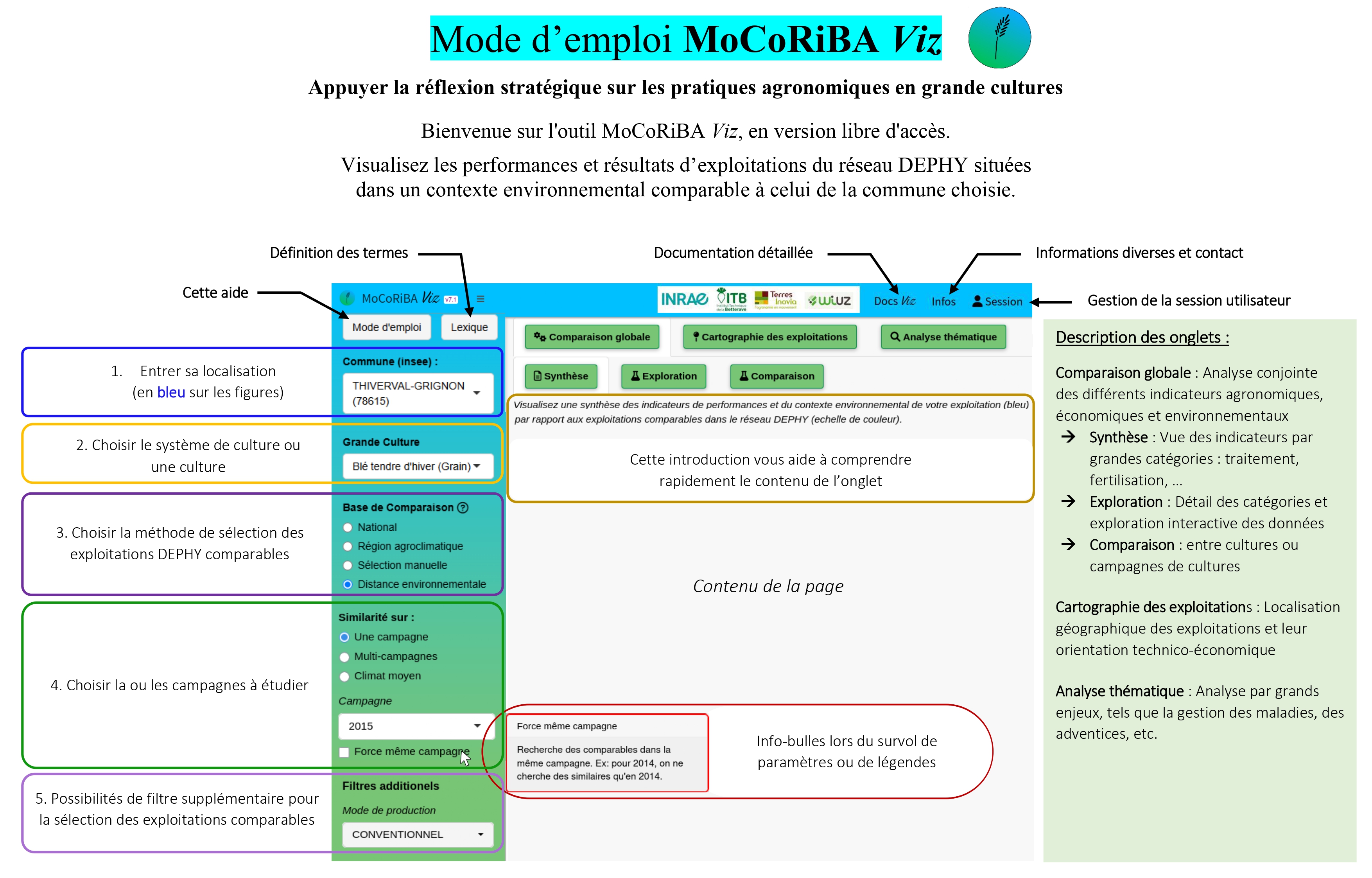MoCoRiBA-Viz permet aux agriculteurs en grandes cultures de comparer leurs performances techniques, économiques et environnementales par rapport à des groupes de références issus du réseau DEPHY, de manière à identifier des voies de progrès.