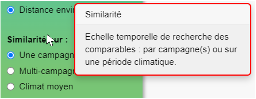 Des aides infobulles sont disponibles en plusieurs endroits. En survolant certains titres ou zones graphiques avec la souris, ou en cliquant sur les « ? », elles fournissent des éléments de compréhension simplifiés sur la fonction ou la construction de l’élément.