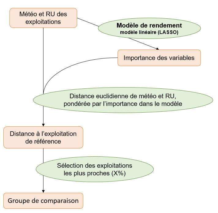- En temps réel et d’après les critères définis par l’utilisateur, des exploitations comparables sont identifiées pour servir de base de comparaison. Les résultats pour différents indicateurs de performances sont calculés et présentés, toujours agrégés afin de garantir l’anonymat des exploitations.
